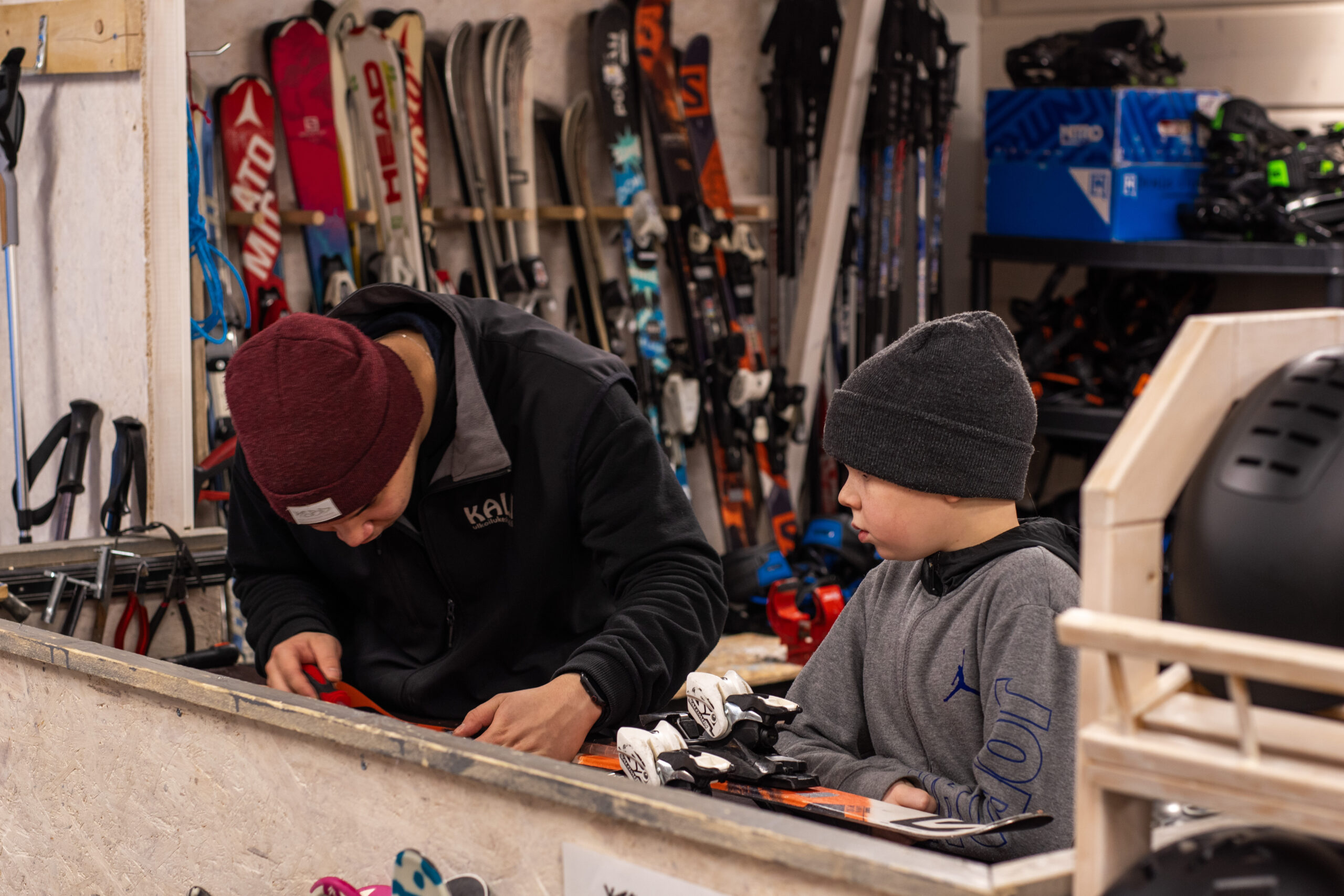 Kalli’s rental shop offers equipment for all ages and sizes, from beginners to more advanced skiers and riders. In addition to skis and snowboards, helmets and ski goggles are also available for rent. We are also happy to assist with adjusting your own equipment.